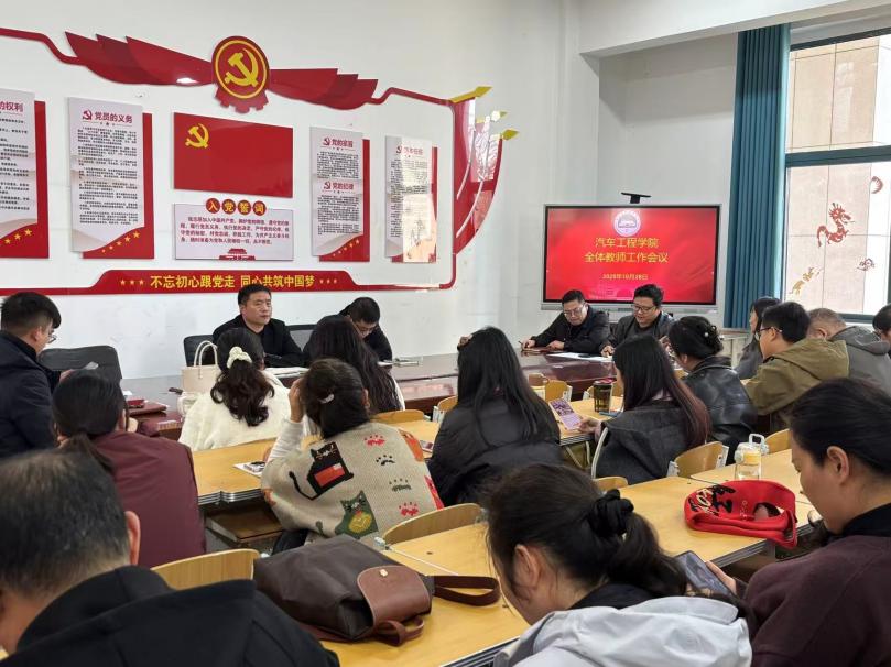 为深入贯彻落实立德树人根本任务,进一步提升教师教学创新能力与课程建设水平,2025年11月10日,汽车工程学院在9号楼123会议室召开全体教师教务工作会议,专题学习并部署2025级课程标准修订工作。会议由学院副院长柳涛主持,汽车工程学院全体教师参会。