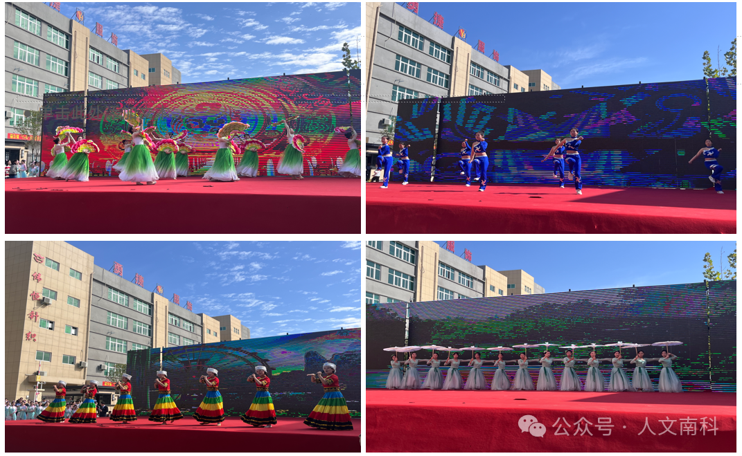 舞台上,舞蹈节目翩翩飞扬,尽显优雅与韵味,充满青春气息;演唱节目歌声悠扬,婉转动听;情景剧精彩纷呈,朗诵激昂。每一个节目都充满了创意与激情,充分展示了我校师生的艺术才华和积极向上的精神风貌。