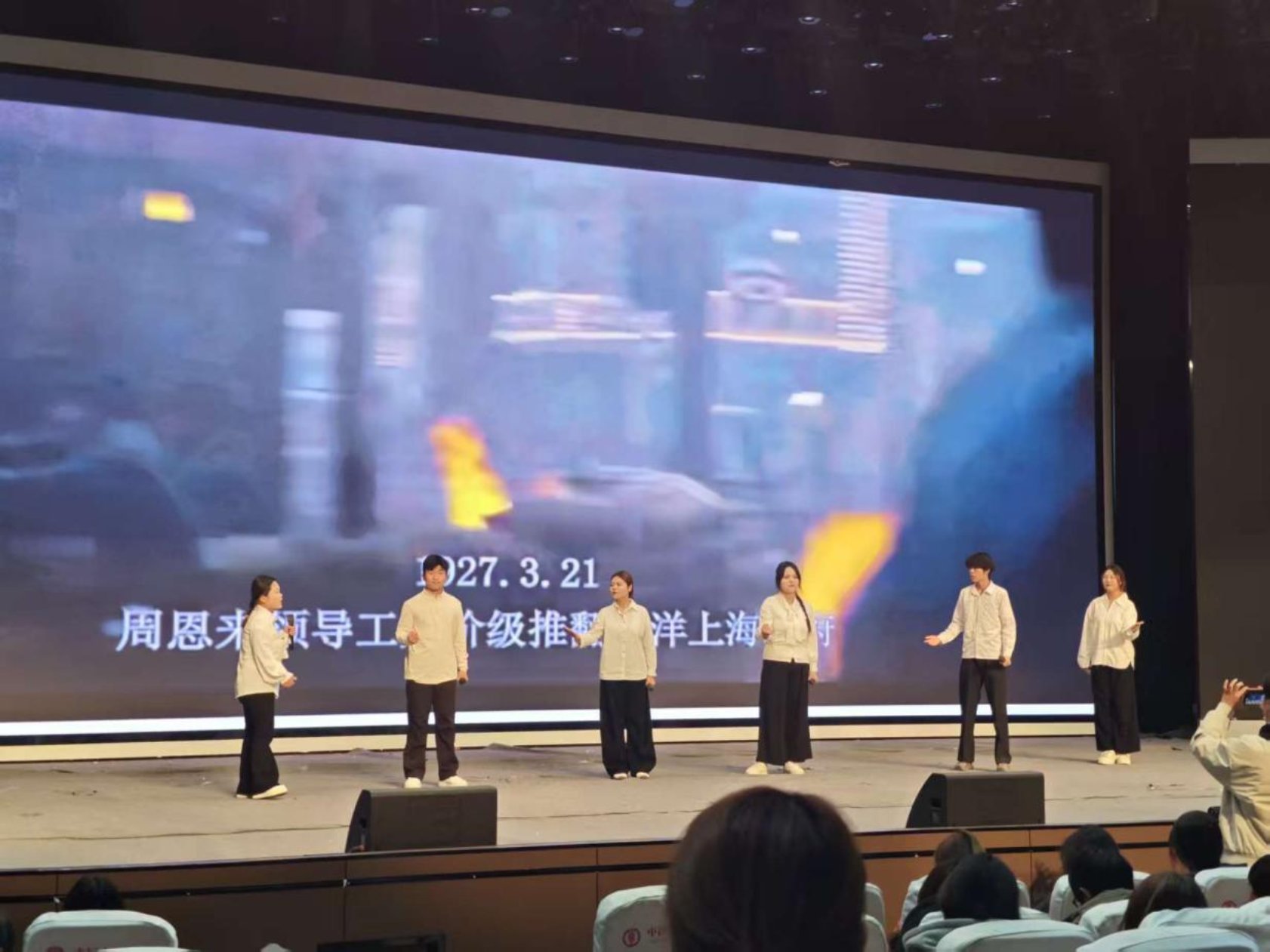 活动伊始,诗朗诵《百年沧桑》拉开序幕。表演者以铿锵语调、饱满情感,串联起中国从近代苦难岁月到当代盛世华章的百年变迁,既快速凝聚全场注意力,更自然引出“铭记历史・汲取力量”环节。师生共同观看历史影像展播,回顾百年奋斗征程关键节点,深刻感悟先辈的坚韧意志与家国担当,从历史长河中汲取前行力量。