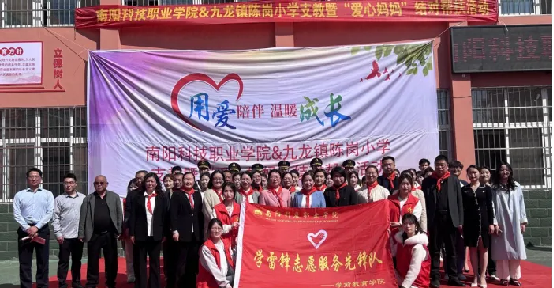 “等闲识得东风面,万紫千红总是春。”在这个春光旖旎的美好时节,2025年3月26日,南阳科技职业学院学前教育学院的师生们满怀热忱,奔赴九龙镇陈岗小学,开启了一场洋溢着爱与希望的“学雷锋”支教活动。当天恰逢南阳科技职业学院“爱心妈妈”结对帮扶活动也来到了陈岗小学,校长郭淼、处长李学敏等9位爱心妈妈和校团委副书记袁键、学院院长邵静雨、党支部书记朱彦丽以及34名学生志愿者一起参加了本次活动。