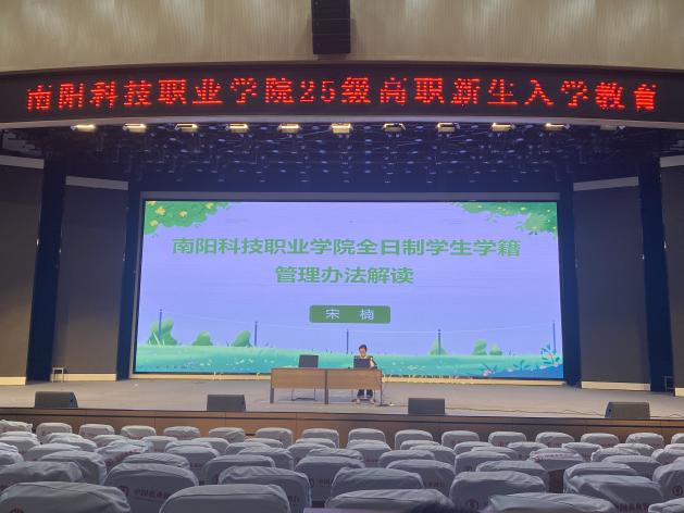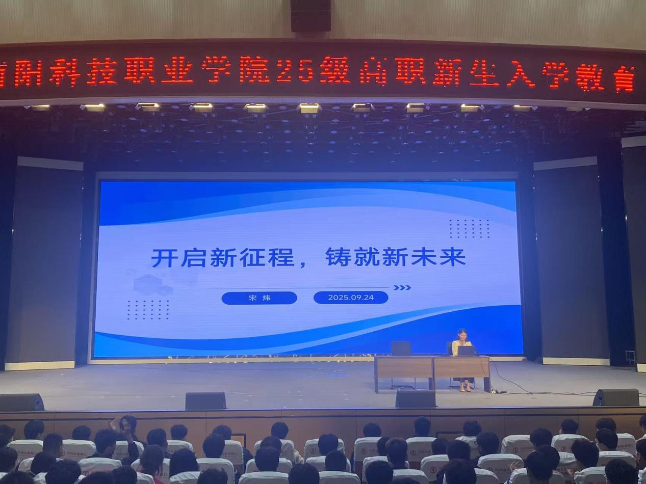 为帮助2025级高职新生快速适应校园环境、明确学业方向、树立规则意识,我校于近期精心组织为期两天的新生入学教育活动。活动聚焦新生在校学习生活核心需求,由教务处、学生处、招生就业处、安全保卫处、团委、图书馆等多部门协同推进,通过专场讲座和网络直播形式,为新生搭建起融入校园的“桥梁”,为其开启大学生涯奠定坚实基础。