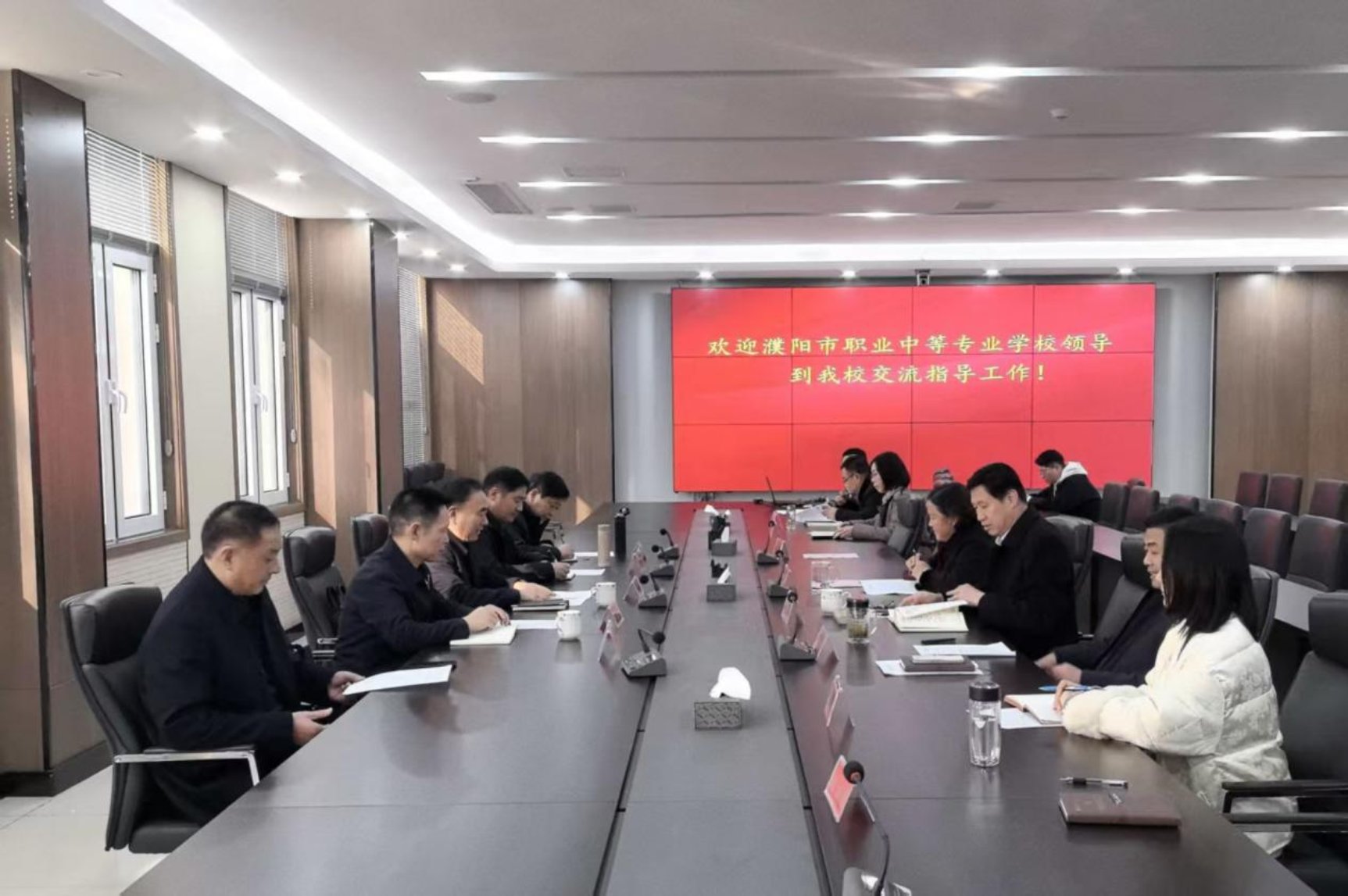 为深化校际合作、推进产教融合提质增效,1月17日,濮阳市职业中等专业学校党委副书记、校长王建民一行来到我校,围绕学校治理、文化建设、校企合作及“3+2”贯通培养等核心议题展开深度交流,共商合作发展新篇章。我校党委委员、副校长丁光雪、刘彦出席会议,校长办公室、招生就业处及学前教育学院、信息工程学院、卫生健康学院等相关部门负责人全程参与交流。