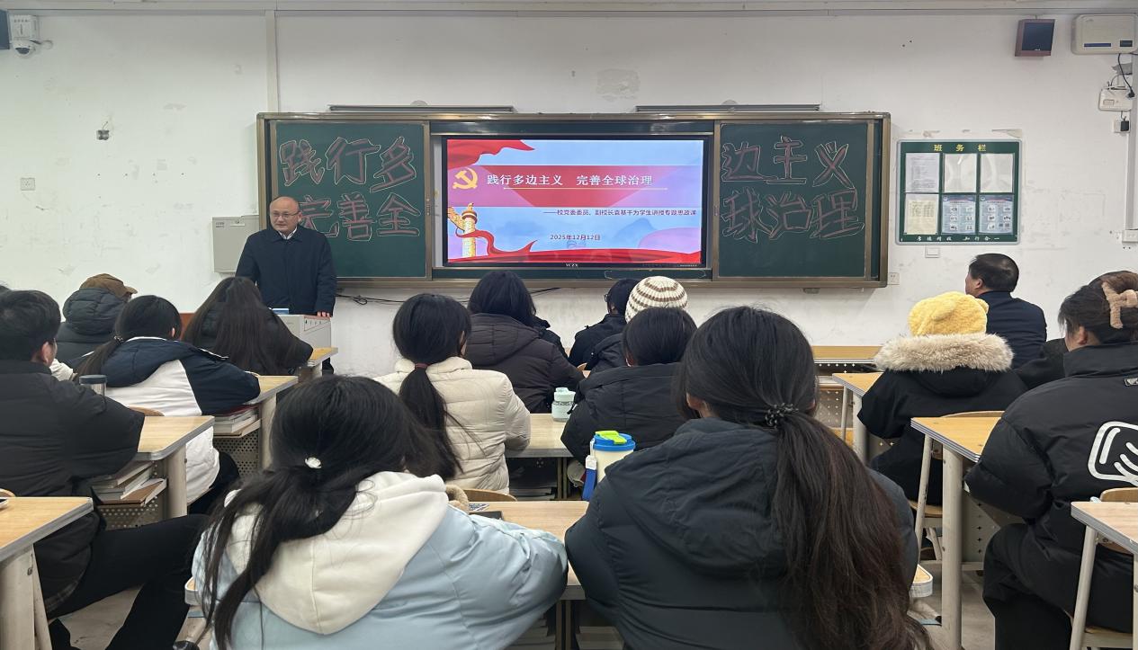 12月12日下午,我校党委委员、副校长袁基干走进护理学院,以“践行多边主义,完善全球治理”为主题,为师生讲授了一堂主题鲜明、内容详实、贴合实际的专题思政课。