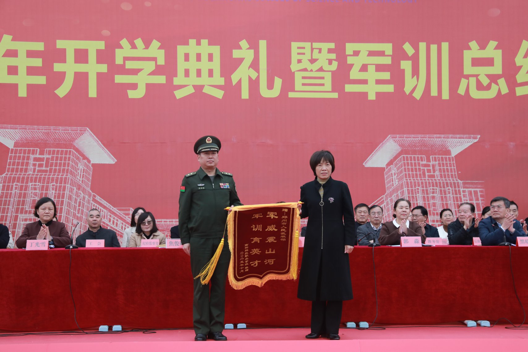 学校党委书记李莉代表学校向邓州市人民武装部赠送锦旗。