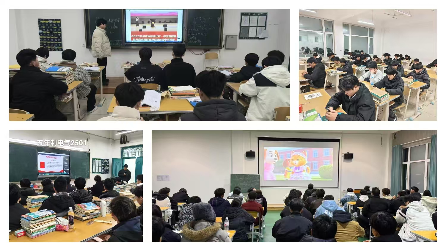 活动采用“观看学习—集中宣讲—互动交流”三阶递进模式,确保宪法精神入耳、入脑、入心,并转化为实际行动。活动伊始,各班级组织全体同学共同观看《“宪”给少年的你》线上公益宣讲视频,通过生动案例与深入浅出的讲解,系统把握法律精神与核心要义,为后续环节奠定了坚实的认知基础。